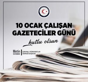 Mesleki yeterlilik kurumu başkan yardımcısı ve Çorumlu Bürokratlar derneği başkanı hemşehrimiz Metin Karaman 10 Ocak çalışan gazeteciler günü dolayısıyla bir mesaj yayınladı.