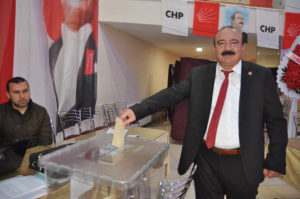 Konuşmaların ardından seçime geçildi. Mevcut başkan Ali Erayhan ile Hamza Yarayan başkanlık için yarıştı. 146 delegeden 117’sinin oy kullandığı seçimde Ali Erayhan 91 oy alarak yeniden ilçe başkanı olurken, diğer aday Hamza Yarayan ise 25 oyda kaldı. Seçimde 1 oyda geçersiz sayıldı.